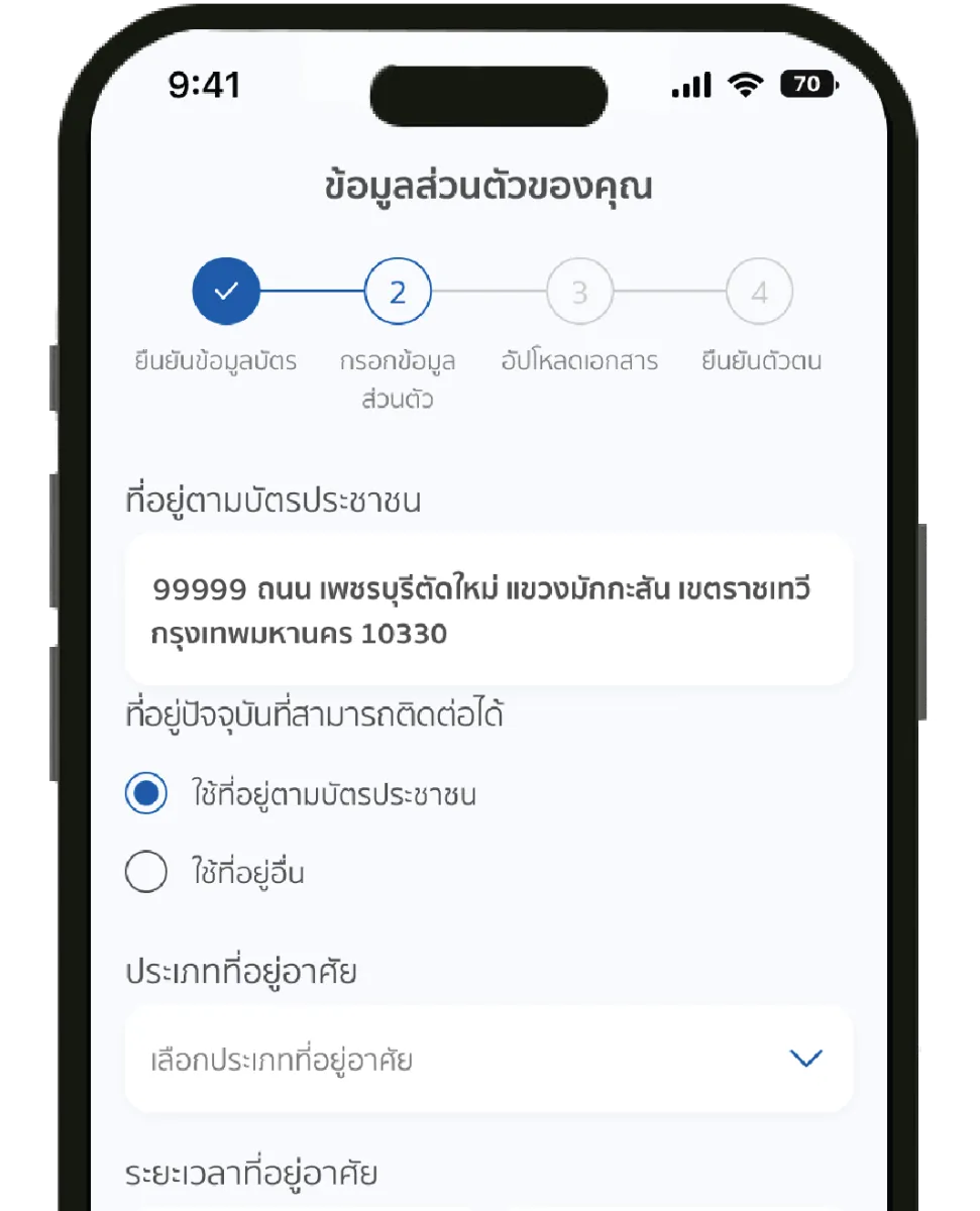 • ทำงานในประเทศไทยไม่น้อยกว่า 2 ปี (สำหรับชาวต่างชาติ)
