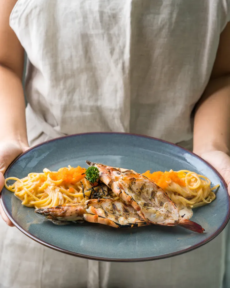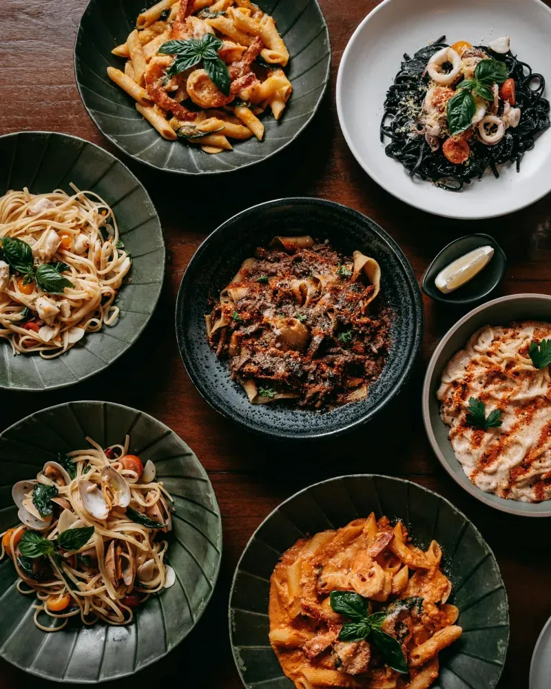เอาใจสายคนชอบเส้นพาสต้ากันก่อน กับร้าน A BOWL OF PASTA ที่บอกได้เลยว่าร้านนี้เขาทำเส้นสดสไตล์ Homemade พร้อมกับบรรยากาศร้านที่แสนจะอบอุ่นโฮมมี่ เป็นกันเอง โดยด้านในก็มีหลากหลายมุมที่นั่งให้เลือกจับจองกันตามสะดวก ซึ่งนอกจากเส้นสดโฮมเมดที่กลายร่างมาเป็นเมนูพาสต้าแบบต่างๆ แล้ว ที่ร้านก็ยังมีเมนูสไตล์อิตาลีอื่นๆ อีกมากมาย ไม่ว่าจะเป็นพิซซ่า รีซอตโต และสลัด โดยมีเมนูแนะนำ อาทิ Calamari & Jalapeno Yuzu Mayo, American Style Shrimp Butter & Garlic & Kabosu, Brown Butter Scallop Yuzu White Wine Risotto และของหวานอย่าง Tisamisu รวมถึงไอศกรีมเจลาโต้