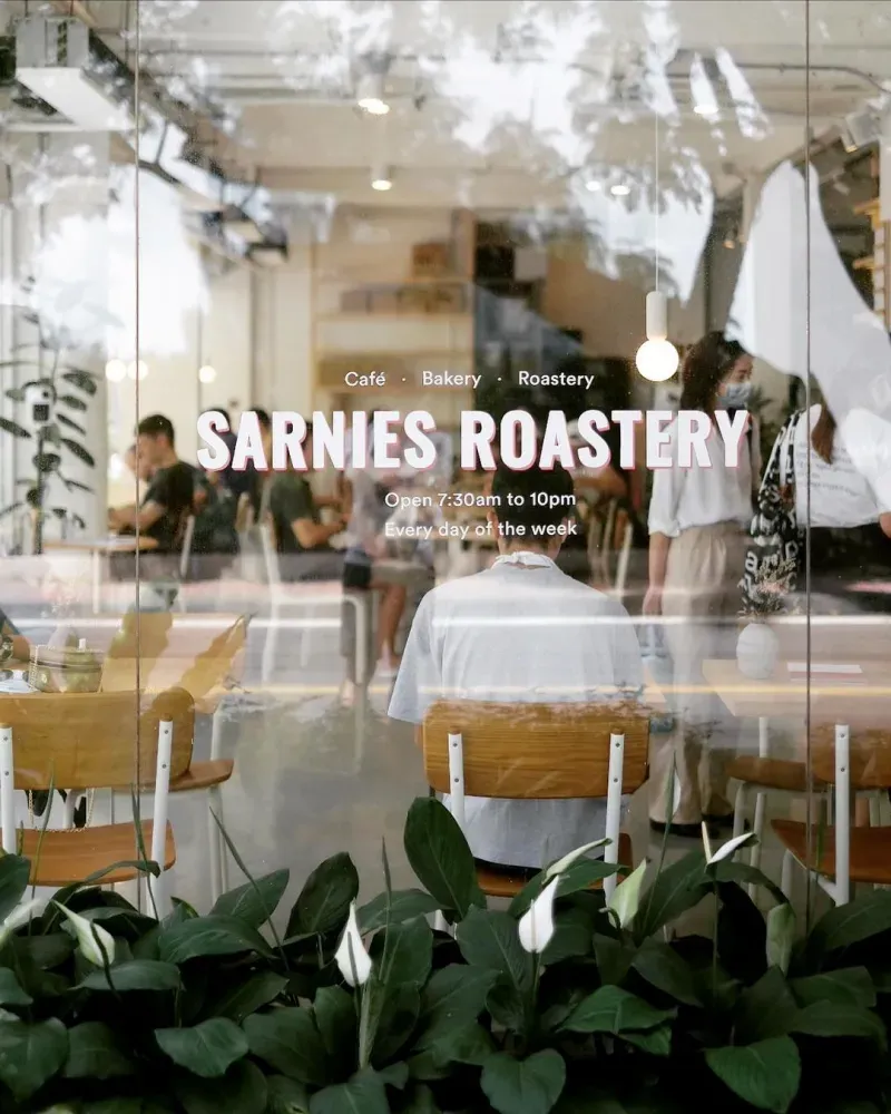 ร้าน Breakfast & Brunch ที่ใครเป็นสายนี้ต้องรู้จัก เพราะ Sarnies ถือเป็นร้านกาแฟชื่อดังจากสิงคโปร์ ที่มาเปิดร้านเมนูสไตล์โฮมคุกสาขาแรกในกรุงเทพฯ ที่ย่านเจริญกรุง และขยับขยายมาที่ซอยต้นสนกับ Sarnies Roastery ที่มีโรงคั่วกาแฟ และบรรยากาศที่แตกต่าง ด้วยมีความโฮมมี่สบายๆ เหมือนมานั่งอยู่บ้านเพื่อน ที่เพียบพร้อมไปด้วยเมนู Bakery & Pastry และเมนูแซนด์วิชที่มีให้เลือกแบบละลานตา แต่เมนูที่ห้ามพลาดที่สาขานี้ก็คือ Smashed Avocado On Toast ซึ่งเป็นขนมปังซาวร์โดสูตรเฉพาะของทางร้าน ท็อปด้วยอะโวคาโดบด มะเขือเทศอบแห้งและสโมกแซลมอน โปะด้วยลาเบินหรือโยเกิร์ตชีส ที่มีเฉพาะสาขานี้เท่านั้น และแน่นอนว่าเมนูกาแฟต่างๆ นั่นเอง