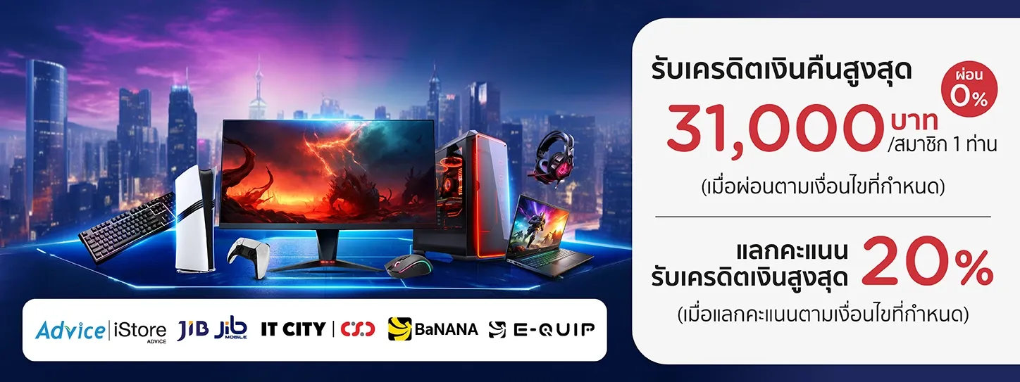 - ผ่อนคอมพิวเตอร์ ใช้บัตรประชาชนใบเดียว ไม่มีการสะสมแต้ม หรือ Cash Back เหมือนการจ่ายด้วยบัตรเครดิต