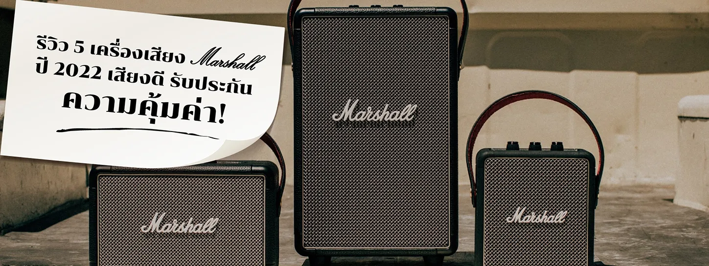 ปฏิเสธไม่ได้เลยว่า "ลำโพง" เป็นอีกหนึ่งไอเทมที่ช่วยเพิ่มอรรถรสในกิจกรรมบันเทิงทั้งดูหนัง ฟังเพลง เล่นเกม และถ้าจะกล่าวถึงแบรนด์ลำโพงที่โดดเด่นทั้งเรื่องคุณภาพเสียง และดีไซน์ที่โดดเด่น ต้องยกให้ Marshall แบรนด์ยอดนิยมจากประเทศอังกฤษที่คร่ำหวอดในวงการเครื่องเสียงมากว่า 60 ปี วันนี้ KTC จะพาไปทำความรู้จักกับแบรนด์ Marshall ให้มากขึ้น ก่อนที่จะกลายเป็นไอเทมที่ตอบโจทย์ทุกไลฟ์สไตล์ในการสร้างมิติแห่งเสียง รวมถึงรีวิว 5 ลำโพงแห่งปี 2022 ที่เหมาะแก่การใช้งาน