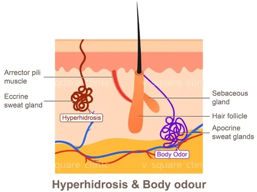 ภาพอธิบายการเกิดเหงื่อและกลิ่นบริเวณรักแร้
