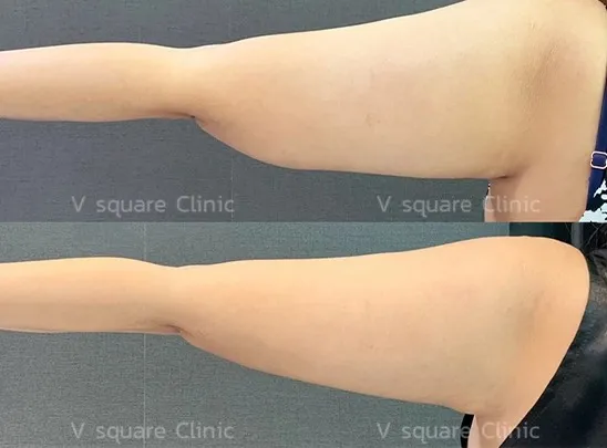 ทำ Coolsculpting ต้นแขน ข้างละ 2 หนีบ จากเดิมก่อนทำ คนไข้มีปัญหาแขนใหญ่ แขนย้วย ไม่กระชับ หลังทำจะเห็นว่าแขนมีขนาดเล็กลง และมีความกระชับมากขึ้น