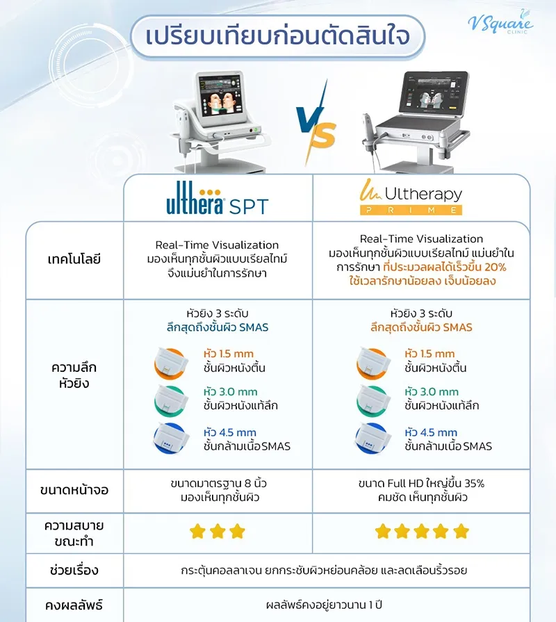 ตารางเปรียบเทียบ Ulthera SPT และ Ulthera Prime