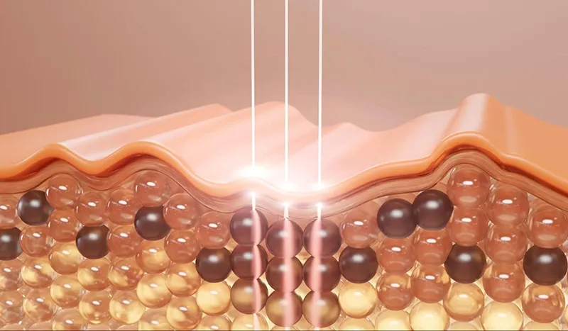 - พลังงานลงเข้าไปสลายเม็ดสีที่ผิดปกติ ทำให้รอยดำ รอยแดง และสีผิวที่ไม่สม่ำเสมอดูจางลง