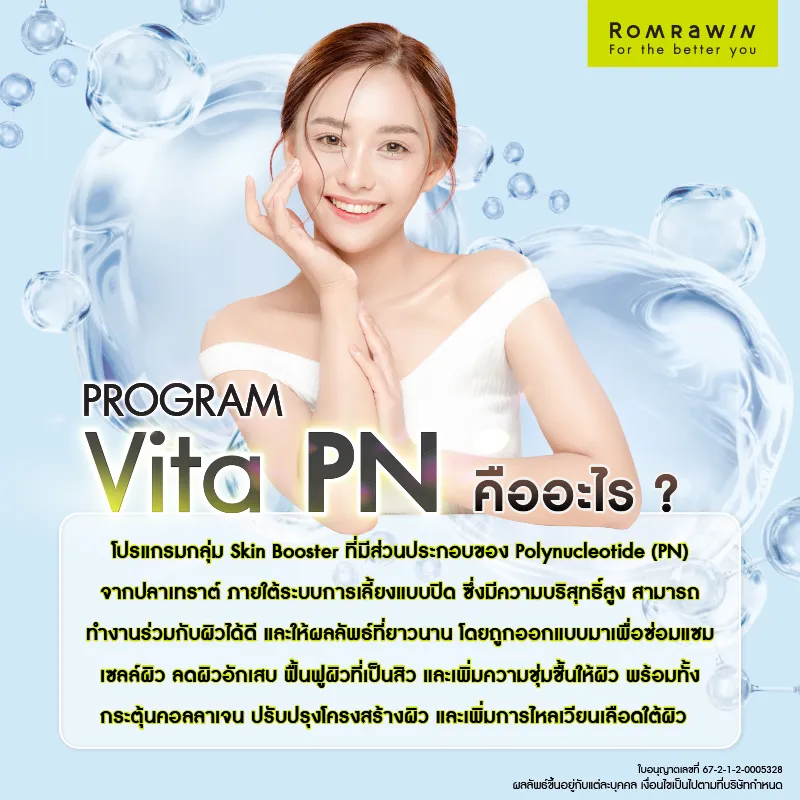 Vitaran I เป็นโปรแกรมฟื้นฟูผิวที่มีส่วนประกอบของ Polynucleotide (PN) สกัดจากปลาเทราต์ที่เพาะเลี้ยงในฟาร์มระบบปิด ทำให้สามารถควบคุมมาตรฐานการผลิตและคุณภาพได้อย่างเข้มงวด ไปจนถึงกระบวนการสกัดและตรวจคัดกรองสารแปลกปลอมหลายขั้นตอน เพื่อให้สารที่มีความบริสุทธิ์สูง โมเลกุลใหญ่ และมีความเสถียรสูง จึงสามารถเข้ากับผิวหนังได้ดี โดยไม่ก่อให้เกิดอาการแพ้ ซึ่ง Vitaran I ถูกออกแบบมาเพื่อซ่อมแซมเซลล์ผิวที่เสื่อมสภาพ กระตุ้นการสร้างคอลลาเจน ลดการอักเสบ ฟื้นฟูเป็นสิว ปลอบประโลมผิว เพิ่มความชุ่มชื้น และเสริมเกราะป้องกันผิว ทำให้ผิวค่อย ๆ แข็งแรง ยืดหยุ่น เรียบเนียน ชุ่มชื้น กระจ่างใส และดูสุขภาพดีจากภายใน โดยไม่ทำให้รูปหน้าเปลี่ยน ดังนั้นสำหรับใครที่สนใจฉีด Vitaran I สามารถเข้ามาปรึกษาแพทย์ได้แล้ววันนี้ที่ รมย์รวินท์คลินิก เพื่อให้แพทย์ตรวจประเมินสภาพผิว พร้อมทั้งวางแผนการรักษาที่เหมาะสม ตอบโจทย์กับความต้องการอย่างแท้จริงค่ะ