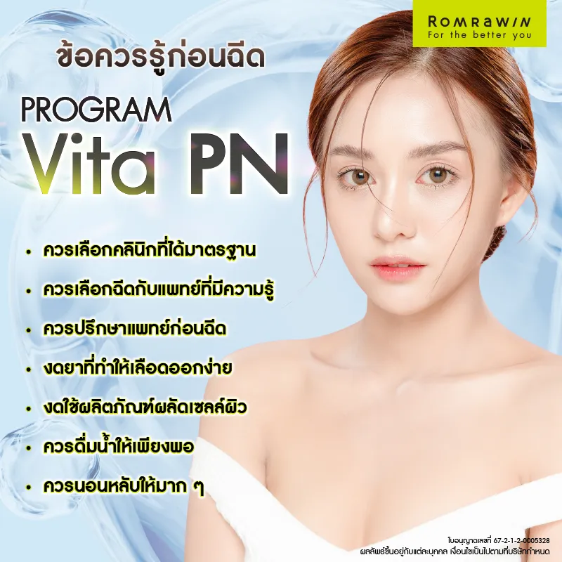 - ควรเข้ารับการปรึกษาแพทย์ก่อนฉีด เพื่อให้แพทย์ประเมินสภาพผิว และวางแผนการรักษาให้เหมาะสม