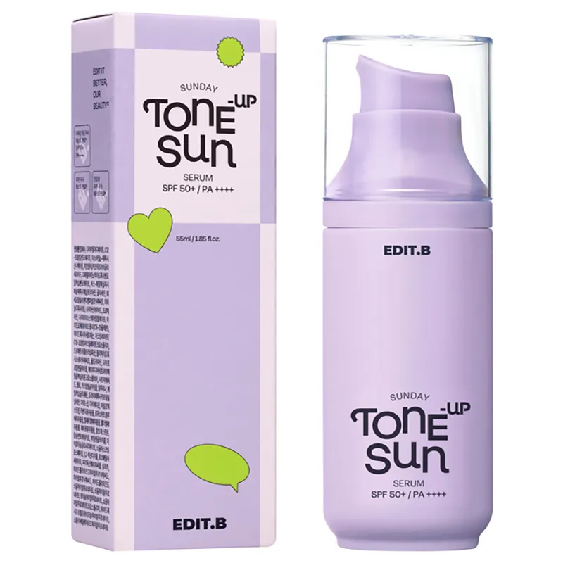 EDIT.B แบรนด์บิวตี้จากประเทศเกาหลีใต้ที่กำลังมาแรงอย่างมากในกลุ่มวัยรุ่นและสาว ๆ วัยทำงานที่ชื่นชอบการแต่งหน้าเน้นงานผิวแบบ “Glass Skin” ซึ่งแบรนด์นี้โด่งดังการผสมผสานความสนุกสนานของเมคอัพเข้ากับประสิทธิภาพการบำรุงของสกินแคร์อย่างลงตัว โดยผลิตภัณฑ์ที่กำลังฮอตฮิตติดกระแสอย่างมากในขณะนี้ก็คือ Sunday Tone-Up Sun Serum SPF 50+ / PA++++ กันแดดเนื้อเซรั่มที่มี Micro Capsules สีม่วง ซึ่งจะแตกตัวเมื่อทา ช่วยปรับสีผิวให้กระจ่างใส (Tone-up) ทันที พร้อมบำรุงให้ผิวชุ่มชื้นเหมือนทาเซรั่มบำรุงผิว
