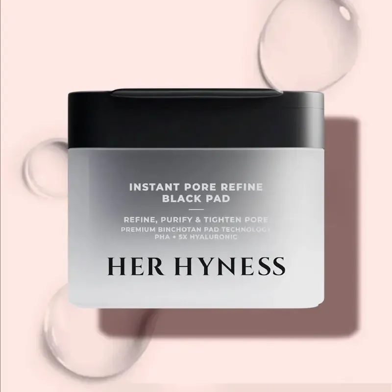 โทนเนอร์แพดแผ่นสีดำจากแบรนด์ไทยชื่อดัง Her Hyness Instant Pore Refine Black Pad ถูกคิดค้นมาเพื่อผิวคนไทยโดยเฉพาะ ตัว toner จะช่วยสลายสิ่งสกปรก คราบเครื่องสำอาง และฝุ่น PM 2.5 พร้อมลดความมันส่วนเกิน ช่วยให้ผิวสดชื่น มีชีวิตชีวา และปรับสมดุลผิวให้กลับมาแข็งแรง ช่วยกระชับรูขุมขนและผลัดเซลล์ผิวอย่างอ่อนโยน เหมาะสำหรับการใช้ทุกวัน ช่วยให้ผิวดูละเอียดขึ้นนอกจากนี้ยังช่วยต้านสิว ปลอบประโลมผิว