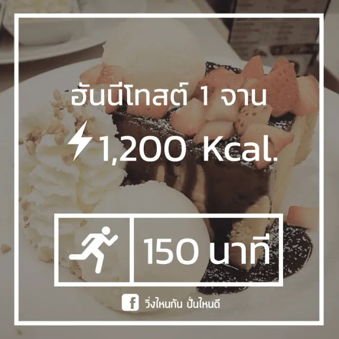 ในขณะที่คุณกำลังฟินจนหลับตาพริ้ม รู้หรือไม่ว่านี่คือ #ภัยเงียบของสุขภาพ ของคุณ! เพราะพลังงานจากเจ้าฮันนี่โทสต์นั้นสูงมากถึง 1,200 กิโลแคลอรี่เลยแหละ!! ถ้าคิดจะทานเจ้าของหวานเมนูนี้ แอดขอเตือนให้หาคนมาช่วยหารแคลด้วยล่ะ เพราะถ้าคุณทานคนเดียวคุณจะต้องไปวิ่งถึง 1 ชั่วโมงครึ่ง (แบบไม่หยุด) เพื่อชดใช้กรรมครั้งนี้อย่างแสนสาหัส!!