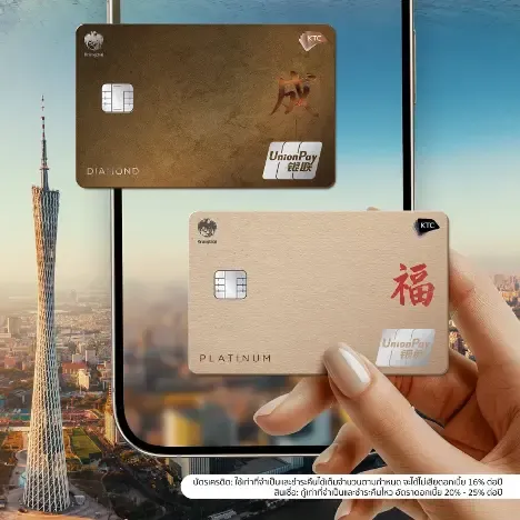 หากคุณมีแพลนเดินทางไปประเทศจีนหรือต่างประเทศ เราขอแนะนำบัตรเครดิต KTC UNIONPAY PLATINUM ที่พร้อมตอบไลฟ์สไตล์ที่ใช่ ทุกการใช้จ่าย ด้วยการมอบสิทธิพิเศษมากมาย อาทิ