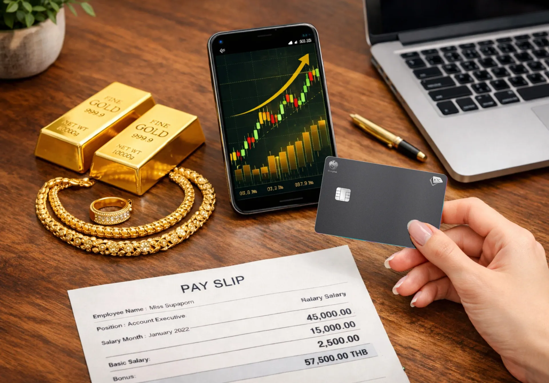 หมายเหตุ: บทความนี้จัดทำขึ้นเพื่อให้ความรู้ด้านการเงินส่วนบุคคล ไม่ใช่คำแนะนำการลงทุน ราคาทองคำมีความผันผวน ผู้ซื้อควรตรวจสอบข้อมูล ต้นทุน และเงื่อนไขให้ครบถ้วนก่อนตัดสินใจ ทั้งนี้ ผู้ถือบัตรเครดิตควรใช้จ่ายเท่าที่จำเป็นและชำระคืนได้เต็มจำนวนตามกำหนด จะได้ไม่เสียดอกเบี้ย 16% ต่อปี / บทความนี้ถูกนำไปเผยแพร่ผ่านสื่อ thiapost.net plewseengern.com bangkok-today.com sanook.com