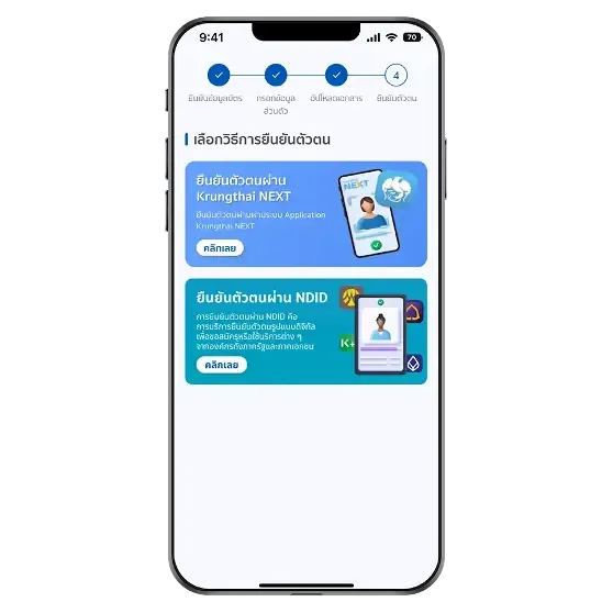 4.ยืนยันตัวตน ผ่านแอป Krungthai Next หรือ NDID จากนั้นยืนยันข้อมูล