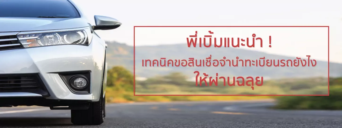 - ทะเบียนรถเล่มจริง รถไม่ติดไฟแนนซ์ และมีชื่อผู้กู้เป็นเจ้าของ