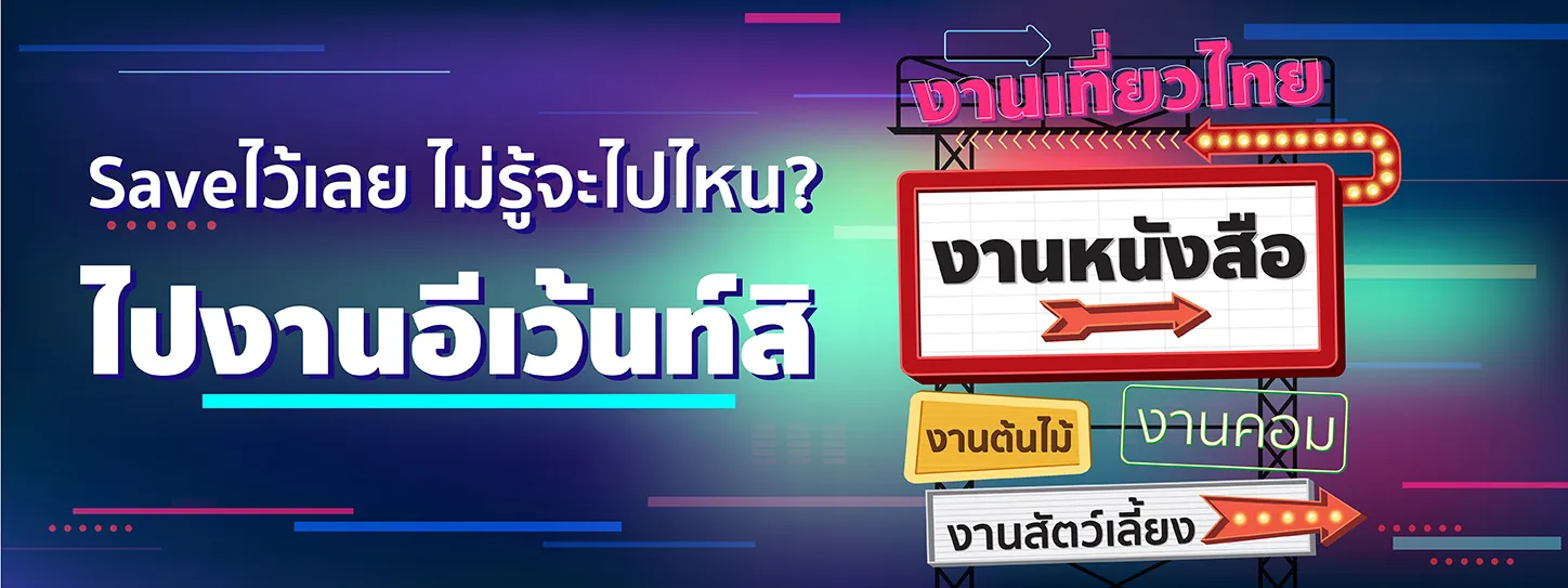 เมืองไทยยังมีงานอีเว้นท์ที่น่าสนใจเยอะมากที่เราอาจไม่เคยรู้ ถ้ายังไม่รู้ว่าจะไปไหนหรือทำอะไรดี อีเว้นท์ต่อไปนี้เราอยากบอกว่าคนขี้เบื่อไม่ควรพลาด ไม่ว่าคุณจะชอบหรือมีไลฟ์สไตล์แบบไหนก็มีงานที่เหมาะให้คุณ เดินจนมีอะไรติดไม้ติดมือกลับมาแน่นอน เรารวมงานที่น่าสนใจมาให้แล้ว ทั้งงานหนังสือ งานต้นไม้ งานสัตว์เลี้ยง งานเที่ยวไทย งานคอม เตรียมไปลุยกันเลย