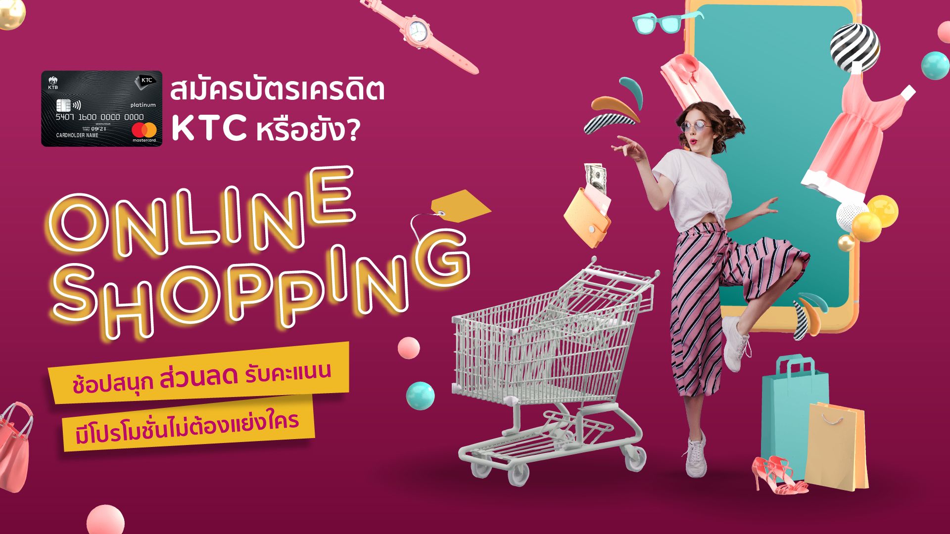 สุดท้ายคือ “จงทำให้การช้อปออนไลน์เป็นเรื่องสนุก” แม้จะดูมีขั้นตอนมากมาย แต่พอได้ลองทำบ่อยๆ จะรู้สึกว่าไม่ใช่เรื่องยาก รับรองคุณจะติดใจในการช้อปออนไลน์ อาจเริ่มต้นด้วยการหาเลือกแอพฯ หรือเว็บไซต์ที่ถูกใจ เลือกบัตรเครดิตที่ช่วยให้ช้อปสนุก และไม่มีค่าธรรมเนียนในการสมัครอย่างของ KTC