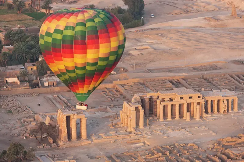 สัมผัสประสบการณ์ล่องฟากฟ้าในบอลลูนลมร้อน ชมพระอาทิตย์ขึ้นเหนือหุบเขากษัตริย์และทุ่งลักซอร์จากมุมสูง มอบทัศนียภาพของเมืองลักซอร์ที่อาบแสงทองอ่อนเผยให้เห็นซากวิหาร โบราณสถาน และทุ่งนาที่ทอดยาวเบื้องล่างอย่างชัดเจน อิ่มเอมไปกับมนต์ขลังของอารยธรรมอียิปต์โบราณในมิติที่แตกต่างอย่างแท้จริง