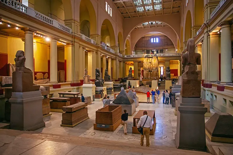 พิพิธภัณฑ์ระดับโลกใจกลางไคโรที่เก็บรวบรวมสมบัติโบราณไว้มากกว่า 120,000 ชิ้น รวมถึงหน้ากากทองคำของฟาโรห์ตุตันคาเมน เมื่อก้าวผ่านประตูหลักจะพบโถงขนาดใหญ่ที่สื่อถึงความสงบและความลึกลับของโลกหลังความตาย มีนิทรรศการจัดแสดงโบราณวัตถุตั้งแต่ยุคก่อนประวัติศาสตร์ ยุคฟาโรห์ กรีก-โรมัน คอปติก อิสลามิก จนถึงยุคสมัยใหม่ พร้อมประติมากรรมสำคัญ เช่น รูปปั้นเทพ Horus และ Khnum กุญแจโบราณของ Kaaba เสื้อผ้าดั้งเดิม และแบบจำลองเรือโบราณ นอกจากนี้ยังมีโซน Royal Mummies Hall จำลองสุสานใน Valley of the Kings ให้ชมมัมมี่กษัตริย์และราชินีชื่อดัง เช่น รามเสสที่ 2 ทุตโมสที่ 3 และฮัตเซปซุต ขุดลึกสู่รากอารยธรรมอียิปต์โบราณ