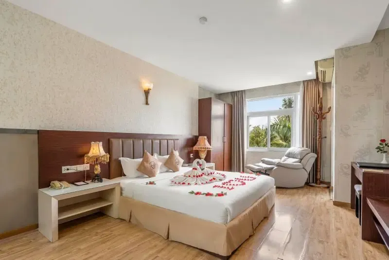 HAIAN Riverfront Hotel โรงแรมใกล้สนามบินดานังที่ห้องพักออกแบบตกแต่งอย่างประณีต พร้อมระเบียงส่วนตัวที่สามารถชมความงามของเมืองดานังและแม่น้ำฮานได้อย่างเต็มตา ทุกห้องกว้างขวาง โปร่งสบาย มีรายละเอียดงานฝีมือที่พิถีพิถัน เพื่อมอบประสบการณ์การพักผ่อนที่แสนสบายและน่าประทับใจ นอกจากนี้โรงแรมตั้งอยู่ริมแม่น้ำ Han ซึ่งเป็นทำเลที่ยอดเยี่ยมในการชมวิวแม่น้ำและสะพานมังกรที่สวยงามในยามค่ำคืน การเดินทางไปยังสนามบินดานังและส่วนอื่น ๆ ของเมืองก็สะดวกสบาย เช่น ตลาดฮาน ห้าง Vincom ศูนย์ประชุม ร้านอาหาร และบาร์ต่าง ๆ