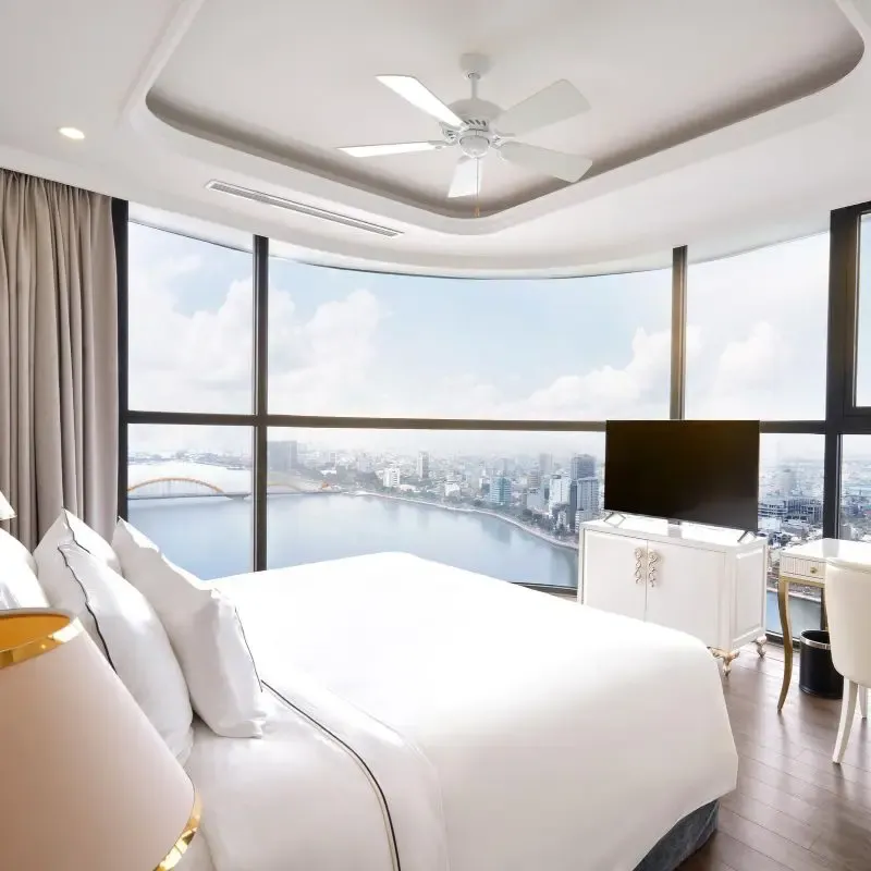 Meliá Vinpearl Danang Riverfront เป็นโรงแรมใกล้สนามบินดานังที่ถูกออกแบบอย่างหรูหราและทันสมัย ตั้งตระหง่านอยู่ริมแม่น้ำ Han ในย่านที่เข้าถึงง่ายและเป็นศูนย์กลางการเดินทาง ทำให้การเดินทางไปยังส่วนต่างๆ ของเมืองเป็นไปอย่างสะดวกสบาย อาคารสูงระฟ้าแห่งนี้สะท้อนถึงความสง่างามและความสะดวกสบายระดับสากล พร้อมวิวทิวทัศน์อันงดงามของเมืองและแม่น้ำ