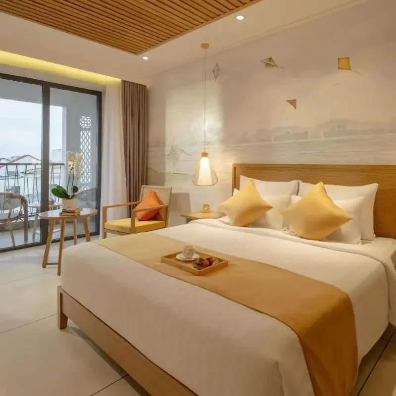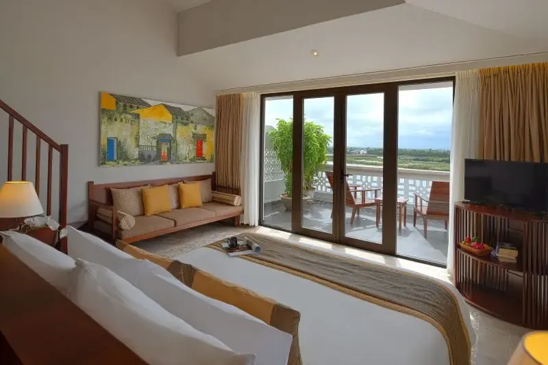 ที่พักฮอยอันที่มีการออกแบบเป็นการผสมผสานความสง่างามแบบคลาสสิกเข้ากับความทันสมัย เน้นการใช้ไม้เนื้อแข็ง ผ้าไหม และศิลปะพื้นเมืองเพื่อสร้างบรรยากาศที่อบอุ่นและมีระดับ ห้องพักส่วนใหญ่มีระเบียงส่วนตัวที่มองเห็นวิวแม่น้ำหรือวิวสวน สระว่ายน้ำแบบอินฟินิตี้ริมแม่น้ำเป็นอีกหนึ่งไฮไลต์ที่น่าประทับใจ นอกจากนี้โรงแรมยังตั้งอยู่ริมแม่น้ำทูโบน โดยอยู่ห่างจากใจกลางเมืองเก่าฮอยอันเพียงไม่กี่นาทีด้วยการเดินเท้าหรือขี่จักรยาน ทำให้ผู้เข้าพักสามารถเพลิดเพลินกับความสงบเงียบของทำเลริมแม่น้ำ ในขณะที่ยังคงเข้าถึงแหล่งท่องเที่ยวสำคัญได้อย่างง่ายดาย ไม่ว่าจะเป็น ตลาดฮอยอัน, สะพานญี่ปุ่น หรือชายหาดสวย ๆ