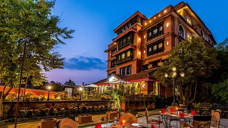 โรงแรมหรูที่อนุรักษ์สถาปัตยกรรมเนวารีโบราณอย่างละเอียดอ่อน ตั้งแต่โครงสร้างอาคารจนถึงงานไม้แกะสลักในทุกมุมของที่พัก ห้องพักตกแต่งด้วยเฟอร์นิเจอร์ไม้พื้นเมืองและงานศิลป์ท้องถิ่น พร้อมสระว่ายน้ำกลางสวนเงียบสงบ ภายในมีร้านอาหาร Nepali Fine Dining “Krishnarpan” และร้านอาหาร Pan-Asian “Mako’s” รวมถึง Pancha Kosha Spa ที่ให้บริการบำบัดแบบองค์รวมตามศาสตร์เนปาลโบราณ Address: Battisputali, Kathmandu, Nepal