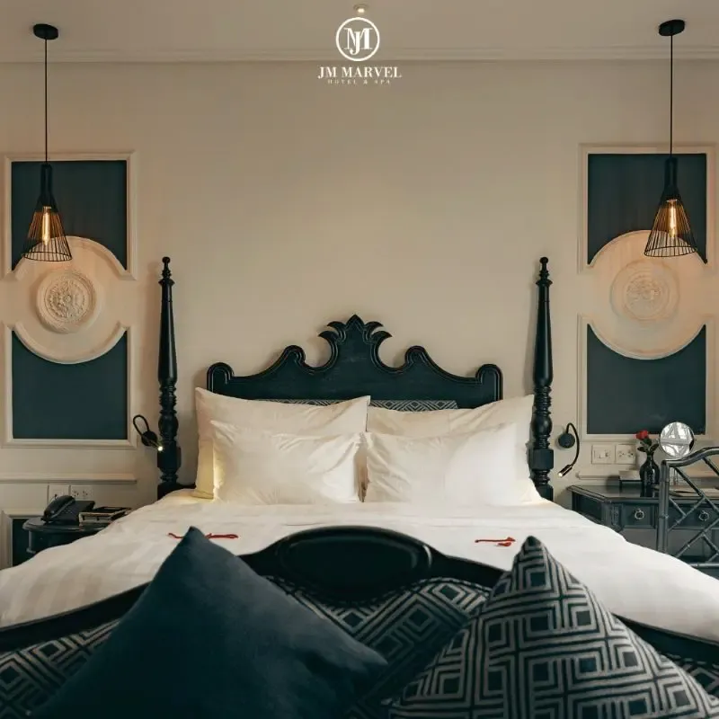 JM Marvel Hotel & Spa โรงแรมอยู่ใจกลางย่านเมืองเก่า Old Quarter ของฮานอย ทำให้สามารถเดินไปยังตลาดดงซวน ถนนอาหาร และสถานที่ท่องเที่ยวสำคัญอื่นๆ อย่าง โบสถ์เซนต์โยเซฟ ได้อย่างสะดวกสบาย ตัวโรงแรมโดดเด่นด้วยสถาปัตยกรรมที่ผสมผสานความสง่างามแบบฝรั่งเศสเข้ากับความละเอียดอ่อนของเวียดนาม การตกแต่งภายในใช้โทนสีอบอุ่นและเฟอร์นิเจอร์ไม้เนื้อแข็ง ให้ความรู้สึกหรูหราแต่ยังคงความสบาย ห้องพักได้รับการออกแบบอย่างพิถีพิถันเพื่อมอบความสะดวกสบายสูงสุด มีบริการสปาให้กับแขกที่เข้าพัก