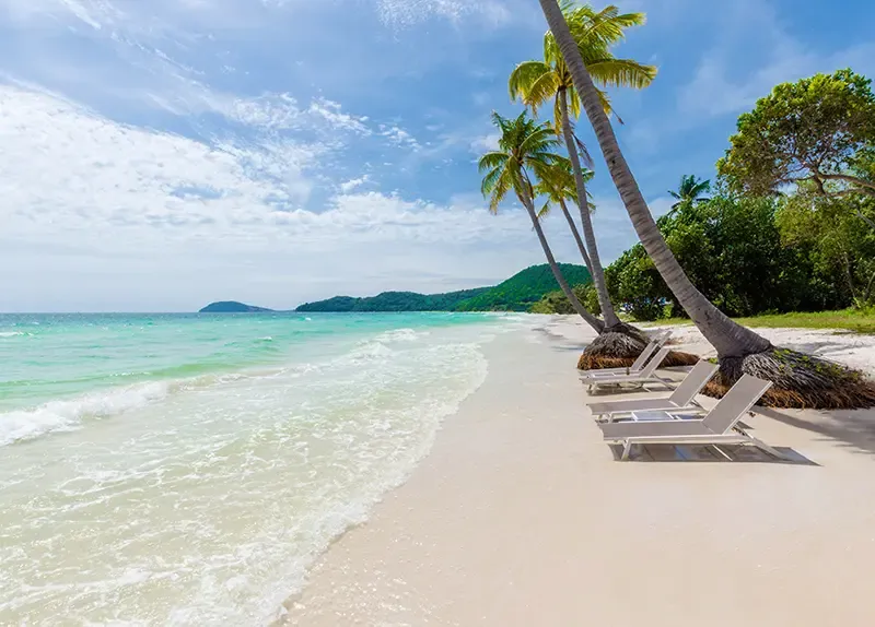 เริ่มต้นวันด้วยความสงบของหาดทรายขาวละเอียดและน้ำทะเลใสจัดที่ไล่เฉดฟ้าสวยราวภาพวาดที่ Sao Beach ชายหาดชื่อดังของฟู ก๊วกซึ่งขึ้นชื่อเรื่องผืนทรายนุ่มดุจผงแป้งและบรรยากาศบีชไลฟ์สุดผ่อนคลาย ไม่ว่าจะ นั่งเอนกายบนเตียงผ้าใบใต้ร่มไม้ เดินช้า ๆ ริมฝั่งเก็บเปลือกหอย หรือปล่อยให้คลื่นบางเบาแตะข้อเท้า ทุกช่วงเวลาที่นี่ชวนให้หัวใจนิ่ง สบาย และกลับมาเชื่อมต่อกับธรรมชาติอย่างเรียบง่ายแต่ลึกซึ้ง
