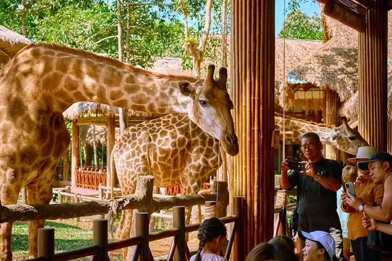 ปิดท้ายทริปด้วยประสบการณ์สุดอบอุ่น ณ ผืนป่าซาฟารีกลางธรรมชาติที่เปิดโอกาสให้คุณได้ใกล้ชิดสัตว์ป่านานาชนิด ตั้งแต่ยีราฟ แรด เสือ ไปจนถึงสายพันธุ์หายากจากหลายทวีป การนั่งรถชมซาฟารีจะพาคุณสำรวจพฤติกรรมของสัตว์ในพื้นที่เปิดโล่งที่จำลองสภาพแวดล้อมตามถิ่นอาศัยจริงอย่างใกล้ชิด นอกจากนี้ยังมีโซนให้อาหารและกิจกรรมสุดหรรษาที่จะทำให้ทุกช่วงเวลาทั้งสนุก อิ่มเอม และน่าจดจำ เป็นการปิดท้ายทริปฟู ก๊วกที่งดงามทั้งภาพและความรู้สึก