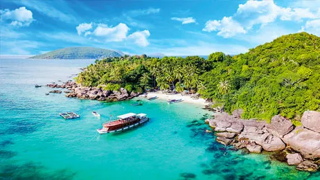 เกาะฟู้ก๊วก หรือ "ไข่มุกแห่งเวียดนามใต้" เป็นเกาะที่ใหญ่ที่สุดในเวียดนามตั้งอยู่ในอ่าวไทย มีความโดดเด่นด้วยทัศนียภาพทางธรรมชาติที่งดงาม ทั้งหาดทรายขาวละเอียดและน้ำทะเลสีครามสดใส พื้นที่กว่า 574 ตารางกิโลเมตรนี้ประกอบด้วยหมู่เกาะน้อยใหญ่ถึง 28 เกาะ โดยมีสินค้าท้องถิ่นที่มีชื่อเสียงระดับโลกอย่างน้ำปลาและพริกไทยดำ ประชากรส่วนใหญ่เป็นมิตรและประกอบอาชีพประมงเป็นหลัก ท่ามกลางบรรยากาศการท่องเที่ยวที่กำลังเติบโตอย่างรวดเร็วในปัจจุบัน