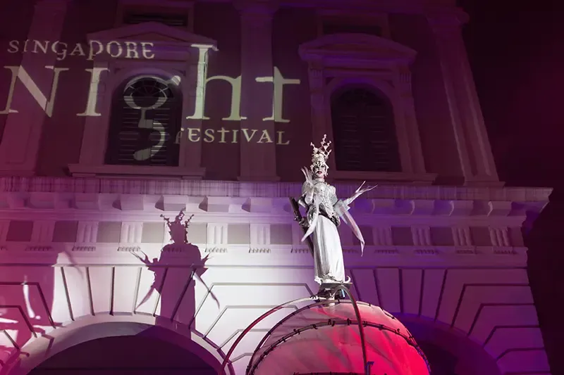 เทศกาลศิลปะร่วมสมัยที่เปลี่ยนย่านประวัติศาสตร์ Bras Basah–Bugis ให้เป็นพื้นที่ศิลปะยามค่ำคืน นำเสนอผลงานแสงไฟ งานจัดวาง การแสดงสด ดนตรี และศิลปะเชิงโต้ตอบ อาคารและถนนถูกออกแบบแสงให้เดินชมได้ตลอดคืน พร้อมการแสดงละครข้างถนนและการเต้นรำตามจุดต่างๆ มีทัวร์เล่าเรื่องประวัติย่าน ตลาดอาหาร และกิจกรรมสำหรับครอบครัว เปิดมุมมองใหม่ของสิงคโปร์ในยามค่ำคืนผ่านศิลปะร่วมสมัย