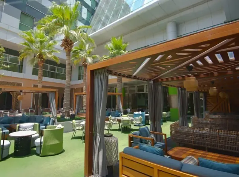 ห้องอาหารเลบานีสที่ให้บรรยากาศร่มรื่นด้วยพื้นที่สวนกลางแจ้ง แนวต้นไม้ น้ำพุ และศาลาคาบานาสำหรับนั่งพักผ่อน เหมาะกับมื้อค่ำกลางแจ้งในช่วงโพล้เพล้ของโดฮา ให้บริการอาหารเลบานีสดั้งเดิม เสิร์ฟแบบแชร์ได้ เช่น Hummus, Moutabal, Falafel และชุด Mezze ต่าง ๆ จานหลักมีเนื้อแกะ ไก่ และซีฟู้ดย่างเตาถ่าน ปรุงด้วยเครื่องเทศตะวันออกกลางตามตำรับดั้งเดิม เครื่องดื่มมีทั้งม็อกเทล ชาอาหรับ และชิชาหลายกลิ่นให้เลือก