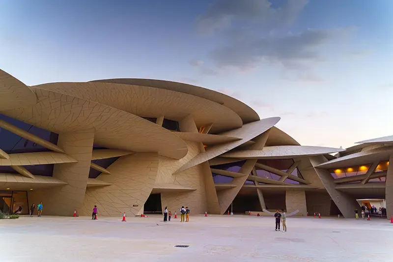 พิพิธภัณฑ์ที่ตั้งใจออกแบบให้เดินสบาย ไม่ต้องเร่ง ไม่ต้องรีบไล่ดูทีละห้อง ค่อย ๆ ซึมซับเรื่องราวของกาตาร์ตั้งแต่อดีตถึงปัจจุบันผ่านนิทรรศการมัลติมีเดียกว่า 11 โซน นำเสนอเรื่องราวตั้งแต่อดีตก่อนยุคน้ำมันจนถึงรัฐสมัยใหม่ อาคารออกแบบโดยสถาปนิกชาวฝรั่งเศส Jean Nouvel ได้แรงบันดาลใจจากรูปทรง “ดอกกุหลาบทะเลทราย” โดยการนำแผ่นดิสก์ขนาดใหญ่มาวางซ้อนทับกันเป็นชั้น ๆ จนกลายเป็นโครงสร้างที่โดดเด่นที่สุดแห่งหนึ่งของโดฮา ทำให้ลาน Plaza รอบอาคารจึงเปรียบเสมือนส่วนต่อเนื่องของงานสถาปัตยกรรมที่สร้างมุมมองถ่ายภาพได้รอบทิศทาง อีกทั้งบริเวณสวนยังมีช่องทางเดินแสนร่มรื่น สนามเด็กเล่น ลานกิจกรรมกลางแจ้ง และจุดนั่งพักชมวิวเส้นขอบฟ้าเมือง รวมถึงสามารถเดินต่อไปยังแนว Doha Corniche ได้สะดวก