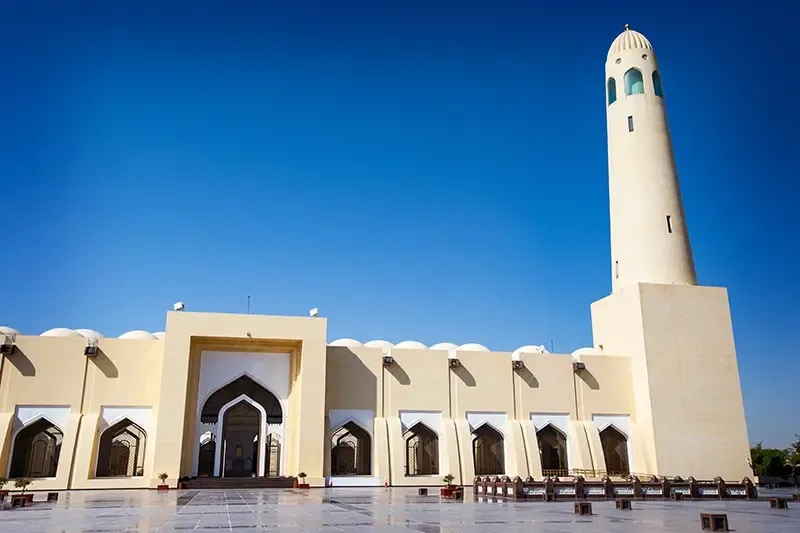 ที่นี่เรียกกันว่า Imam Muhammad ibn Abd al-Wahhab Mosque มัสยิดหลวงและศูนย์กลางศรัทธาที่สำคัญที่สุดของกาตาร์ ตั้งอยู่บนเนินเขาย่าน Al Jebail มองเห็นทิวทัศน์กรุงโดฮาได้กว้างไกล เปิดใช้งานอย่างเป็นทางการในปี ค.ศ. 2011 และยังคงเป็นสถานที่ประกอบศาสนกิจหลักในวันศุกร์และช่วงเทศกาลสำคัญทางศาสนา สถาปัตยกรรมได้รับแรงบันดาลใจจากรูปแบบนัจญ์ด (Najdi) อันเป็นรากวัฒนธรรมของคาบสมุทรอาหรับ โครงสร้างใช้หินสีทรายอ่อน เส้นสายเรียบชัด โดมหลักตั้งเด่นเหนือโถงละหมาด พร้อมหออะซานทรงเพรียวหลายต้นที่จัดวางอย่างมีจังหวะ ตัวมัสยิดมีโดมขนาดเล็กมากกว่า 90 โดม และรองรับผู้ศรัทธาได้ราว 30,000 คน โดยโถงหลักสำหรับผู้ชายจุประมาณ 11,000 คน และมีพื้นที่แยกสำหรับสตรีอย่างเป็นสัดส่วน แสงธรรมชาติที่ลอดผ่านช่องเปิดและหน้าต่างทรงเรขาคณิต สร้างบรรยากาศสงบเหมาะแก่การภาวนา พื้นที่ภายนอกจัดเป็นลานกว้างและทางเดินเชื่อมต่ออาคารต่าง ๆ เปิดมุมมองสู่เส้นขอบฟ้าเมือง โดยเฉพาะช่วงเย็นเมื่อแสงอาทิตย์อาบผนังหินสีอ่อนให้ดูนุ่มลึก ผู้ที่ไม่ได้นับถือศาสนาอิสลามสามารถเข้าชมภายนอกและบางส่วนของอาคารได้ตามเวลาที่กำหนด ควรแต่งกายสุภาพ และตรวจสอบเวลาเปิด–ปิดล่วงหน้า โดยเฉพาะในวันศุกร์ซึ่งเป็นวันสำคัญทางศาสนา