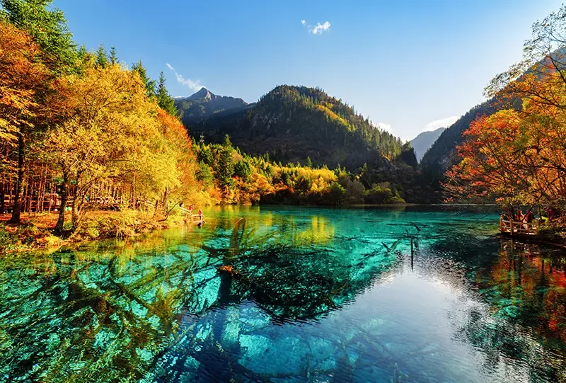 ที่สุดแห่งจุดหมายชมทัศนียภาพโด่งดังของจีน โดดเด่นด้วยวิวทะเลสาบสีฟ้ามรกต น้ำตกใสไหลเป็นสาย และป่าสนผสมต้นเมเปิลที่ผลัดใบเป็นสีเหลือง แดง และส้มหลากเฉด สะท้อนเงาลงบนทะเลสาบใสราวกับกระจกบานใหญ่ สร้างภาพจำแห่งฤดูใบไม้ร่วงที่งดงามราวกับภาพวาด นอกจากนี้ Jiuzhaigou ยังถือเป็นมรดกโลกยูเนสโกที่นักท่องเที่ยวทั่วโลกใฝ่ฝันอยากมาเยือน ไม่เพียงแต่ธรรมชาติที่งดงามเท่านั้น แต่ยังเป็นที่ตั้งของหมู่บ้านชาวทิเบตและชาวช้างเผือก (Qiang) ซึ่งเปิดโอกาสให้นักท่องเที่ยวได้มาสัมผัสวิถีชีวิตดั้งเดิม เรียนรู้วัฒนธรรมท้องถิ่น และลิ้มรสอาหารพื้นบ้าน ทำให้การเดินทางที่นี่เต็มไปด้วยทั้งความงดงามทางธรรมชาติและประสบการณ์วัฒนธรรมเฉพาะตัว