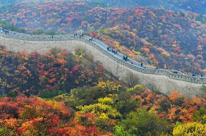 ช่วงกลางตุลาคมถึงต้นเดือนพฤศจิกายนเป็นช่วงเวลาที่เหมาะที่สุดในการไปตระเวณชมใบไม้เปลี่ยนสีบนกำแพงเมืองจีน เพราะอากาศเย็นสบาย ท้องฟ้าแจ่มใส เหมาะสำหรับการเดินเล่น ถ่ายภาพ และสัมผัสความยิ่งใหญ่ของสถาปัตยกรรมประวัติศาสตร์โดยไม่ร้อนหรือแออัดเหมือนช่วงฤดูร้อน
