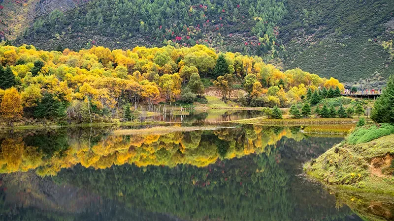 อุทยานแห่งชาติปู้ต้าฉั่วในเมืองแชงกรีล่า มณฑลยูนนาน เป็นพื้นที่ธรรมชาติอันอุดมสมบูรณ์ที่โดดเด่นด้วยวิวทะเลสาบใส ป่าสนหนาทึบ และทุ่งหญ้ากว้างใหญ่ ซึ่งในฤดูใบไม้ร่วงผืนป่าแห่งนี้จะถูกเนรมิตให้กลายเป็นผลงานจิตรกรรมชิ้นเอกที่ธรรมชาติบรรจงรังสรรค์ขึ้นมาอย่างปราณีต ด้วยสีแดง เหลือง และทองที่ประดับอยู่ในทุกตารางนิ้ว อีกทั้งยังเป็นที่อยู่อาศัยของสัตว์ป่าหายาก เช่น กวางแดงและนกหลายสายพันธุ์ รวมถึงเป็นที่ตั้งของทะเลสาบสวยงามอย่างทะเลสาบชูตู (Shudu Lake) และทะเลสาบปี่ต้า (Bita Lake) สามารถเลือกไปพักผ่อนในรีสอร์ตริมน้ำหรือโฮมสเตย์ท้องถิ่น ชมวิวป่าสนและทุ่งหญ้าสีทองแบบพาโนรามาและเรียนรู้วัฒนธรรมท้องถิ่นของชาวนีปาและชาวทิเบตที่อาศัยอยู่ใกล้เคียง เติมเต็มประสบการณ์ด้วยความงดงามของธรรมชาติและความอบอุ่นของผู้คนอย่างครบถ้วน