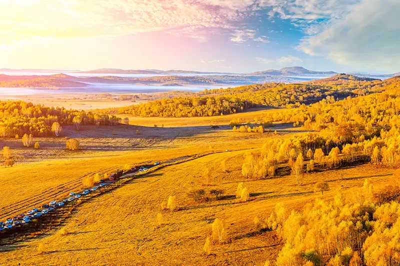 ทุ่งหญ้าอูหลันปู้ถ่งเป็นหนึ่งในทุ่งหญ้ากว้างใหญ่สุดลูกหูลูกตาของเขตปกครองตนเองมองโกเลีย โดดเด่นด้วยทิวทัศน์เปิดโล่งสลับกับเนินเขาและลำธารเล็ก ๆ ในฤดูใบไม้ร่วงผืนหญ้าจะถูกแต่งแต้มด้วยสีเหลืองทองและส้มอ่อน ราวกับภาพวาดขนาดใหญ่ที่เคลื่อนไหวไปตามสายลม มีฉากหลังเป็นเทือกเขาคุนหลุน (Kunlun Mountains) หนึ่งในเทือกเขาที่ยาวที่สุดในเอเชียตั้งสูงตระหง่าน บรรยากาศเงียบสงบ เหมาะกับการสนุกกับกิจกรรมขี่ม้า ชมฝูงแกะหรือม้าเลี้ยงตามธรรมชาติ และเก็บภาพพาโนรามาที่งดงามสุดตระการตา ในตอนเช้าจะมีหมอกบาง ๆ ปกคลุมพื้นหญ้า เพิ่มเสน่ห์ให้ทุ่งหญ้าแห่งนี้ราวกับได้หลุดเข้าไปสู่โลกนิยายแฟนตาซีในทุกวินาที