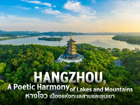 หางโจว เมืองหลวงของมณฑลเจ้อเจียง ทางตะวันออกของจีน เติบโตเป็นศูนย์กลางเศรษฐกิจพร้อมรากทางวัฒนธรรมที่มีมาแต่โบราณ เป็นที่ตั้งของบริษัทเทคโนโลยีข้ามชาติและยังเป็นเมืองท่องเที่ยวสำคัญที่มีชื่อเสียงระดับโลก มีทะเลสาบซีหู (West Lake) ที่ได้รับการขึ้นทะเบียนเป็นมรดกโลกจากองค์การยูเนสโก หรือจะเป็นตรอกโบราณอย่าง Qinghefang Street ที่เต็มไปด้วยร้านค้าและอาหารท้องถิ่น รวมถึงพื้นที่ชุ่มน้ำ Xixi National Wetland Park และตัวเมืองที่ทันสมัย ตึกระฟ้าสวยงาม