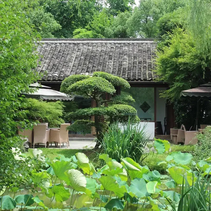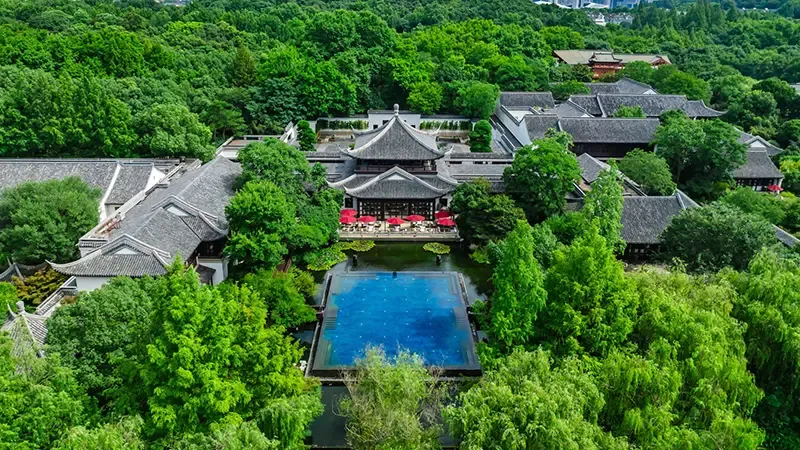 โรงแรมตั้งอยู่ฝั่งตะวันตกของทะเลสาบซีหู โดยออกแบบโดยยึดแนวคิดสวนจีนดั้งเดิม อาคารชั้นต่ำเรียงตัวรอบสระบัว ทางเดินหิน และสะพานโค้ง สร้างความรู้สึกเป็นสัดส่วนและเป็นส่วนตัว ห้องพักและวิลล่าตกแต่งด้วยงานไม้ โทนสีอ่อน และหน้าต่างบานใหญ่รับแสงธรรมชาติ หลายห้องมองเห็นสวนหรือผืนน้ำภายในพื้นที่โรงแรม ภัตตาคารของโรงแรมได้รับการจัดอันดับในคู่มือมิชลินไกด์ของหางโจวในช่วงหลายปีที่ผ่านมา