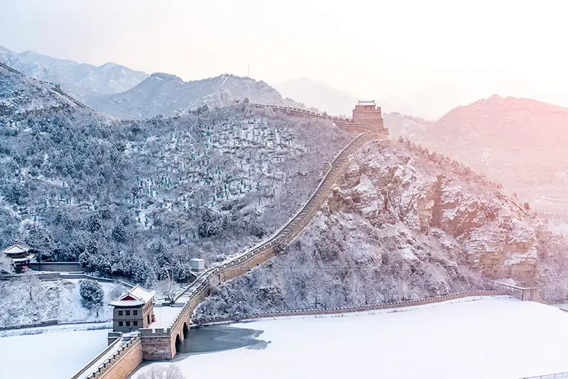 กำแพงเมืองจีนในฤดูหนาวคือจุดหมายยอดนิยมที่เผยความงามอันสงบและยิ่งใหญ่ เมื่อหิมะขาวปกคลุมแนวกำแพงหินที่ทอดยาวไปตามสันเขา เกิดเป็นภาพของป้อมปราการโบราณตัดกับทิวเขาสีขาวสร้างบรรยากาศนวลละมุนและทรงพลังในเวลาเดียวกัน ท่ามกลางความเงียบของฤดูหนาวที่ช่วยขับให้รายละเอียดของสถาปัตยกรรมโบราณดูโดดเด่นยิ่งขึ้น พร้อมด้วยแสงอ่อนของฤดูหนาวและหมอกบางยามเช้าทำให้ทิวทัศน์ดูราวภาพวาด โดยเฉพาะบริเวณป้อม Mutianyu และ Jinshanling สองจุดชมวิวที่ผู้คนไม่พลุกพล่าน เหมาะสำหรับการเดินชม ถ่ายภาพวิว และซึมซับเรื่องราวประวัติศาสตร์ของกำแพงเมืองจีนในมุมที่แตกต่างจากฤดูท่องเที่ยวปกติ