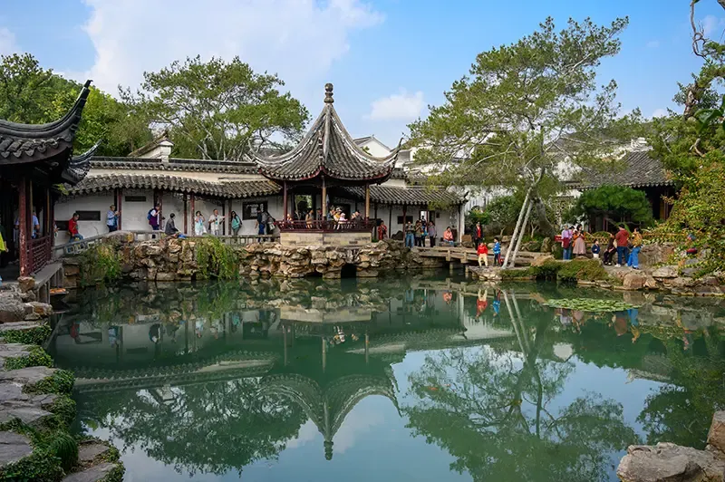 “สวนจัวเจิ้ง” หนึ่งในสวนจีนคลาสสิกที่งดงามที่สุดในโลก สร้างขึ้นในสมัยราชวงศ์หมิง มีอายุกว่า 500 ปี และได้รับการขึ้นทะเบียนเป็นมรดกโลกโดยยูเนสโก โดดเด่นด้วยการออกแบบที่ให้ธรรมชาติและสถาปัตยกรรมอยู่ร่วมกัน ภายในประกอบด้วยสระน้ำ คลอง หินประดับ และศาลาโบราณกระจายทั่วพื้นที่ บรรยากาศเงียบสงบ ร่มรื่น เหมาะแก่การเดินชมท่ามกลางต้นไม้และพืชพรรณที่เปลี่ยนไปตามฤดูกาล ศาลาแต่ละหลังเปิดมุมมองสู่ทัศนียภาพที่แตกต่าง ราวกับภาพวาดจีนที่มีชีวิต และสะท้อนแนวคิดจีนเรื่องความเรียบง่ายและสมดุลของวิถีชีวิตตั้งแต่โบราณกาล