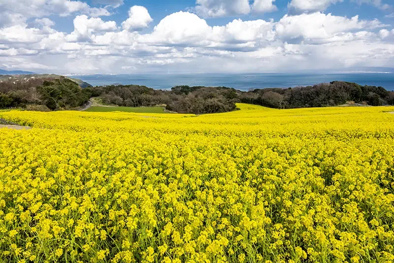 Awaji Island ตั้งอยู่ทางตอนใต้ของจังหวัดเฮียวโงะ เดินทางง่ายเพียงข้ามสะพานอะคะชิไคเคียว เกาะนี้มีชื่อเสียงด้านธรรมชาติที่อุดมสมบูรณ์และสวนดอกไม้ที่งดงาม โดยเฉพาะ Awaji Yumebutai ผลงานออกแบบของสถาปนิกทาดาโอะ อันโดะ ที่เน้นความเรียบง่ายและความสงบในภูมิทัศน์ นักท่องเที่ยวสามารถเดินเล่นบนชายหาด ทำกิจกรรมทางน้ำ หรือเดินเส้นทางชมวิวและสวนดอกไม้ตามฤดูกาล เกาะอะวะจิจึงเป็นจุดหมายยอดนิยมสำหรับผู้ที่ต้องการพักผ่อน สูดอากาศบริสุทธิ์ และสัมผัสความสงบ แม้เที่ยวแบบวันเดียวจากโกเบก็สามารถเก็บครบทั้งวิวทะเล สวนดอกไม้ และบรรยากาศผ่อนคลายของเกาะได้อย่างเต็มที่