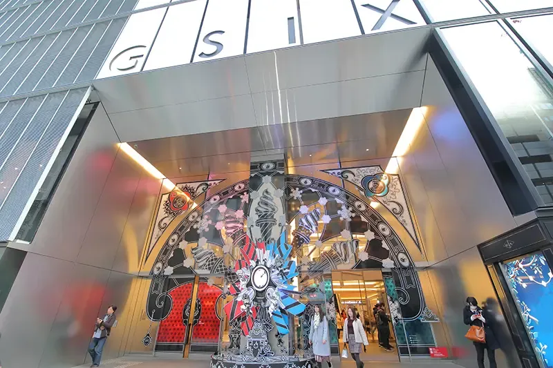 ศูนย์การค้าหรูใจกลางย่านกินซ่าที่สะท้อนภาพลักษณ์ร่วมสมัยของโตเกียวได้อย่างชัดเจน อาคารขนาดใหญ่แห่งนี้รวบรวมแบรนด์แฟชั่นระดับโลกและดีไซเนอร์ญี่ปุ่นจำนวนมาก ไม่ว่าจะเป็น Dior, Saint Laurent, Celine หรือ Comme des Garçons ภายในยังมีพื้นที่จัดแสดงงานศิลปะร่วมสมัยที่หมุนเวียนตลอดปี รวมถึง Tsutaya Books ร้านหนังสือและไลฟ์สไตล์สโตร์ที่โดดเด่นด้านศิลปะและวัฒนธรรม ด้านบนของอาคารยังมี Rooftop Garden สวนลอยฟ้าที่เปิดให้ผู้มาเยือนได้ขึ้นไปพักผ่อนและชมวิวเมือง ทำให้ Ginza Six เป็นจุดหมายที่หลอมรวมแฟชั่น ศิลปะ และไลฟ์สไตล์เข้าด้วยกันอย่างลงตัว
