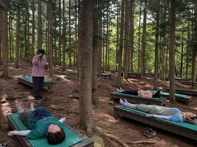 ผืนป่าธรรมชาติบนภูเขา Cheonggyesan ในย่าน Wonji‑dong ที่อยู่ห่างจากกรุงโซลเพียง 15 นาที ถูกจัดเป็น Healing Forest พร้อมเส้นทางเดินป่าและทิวต้นสน-สนเข็มที่สร้างสภาพแวดล้อมเพื่อการบำบัดตามธรรมชาติ ทั้ง Phytoncide นอนสูดโอโซนและฟังเสียงธรรมชาติ เหมาะสำหรับการเดินเล่น ช่วยกระตุ้นระบบภูมิคุ้มกัน ลดความเครียด และเติมพลังให้ร่างกายและจิตใจ การเดินป่าเบา ๆ ท่ามกลางเส้นทางที่จัดไว้อย่างเรียบร้อย ทำให้ผู้มาเยือนรู้สึกสงบและเชื่อมต่อกับธรรมชาติอย่างแท้จริง