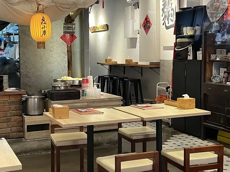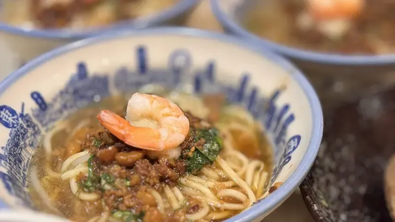 เมื่อก้าวเข้าไปใน Du Hsiao Yueh สาขาตีฮั่ว คุณจะสัมผัสได้ถึงกลิ่นหอมกรุ่นของน้ำซุปหัวกุ้งที่เคี่ยวมาอย่างดีด้วยสูตรลับเฉพาะ ตำรับดั้งเดิมที่สืบทอดมานานกว่า 120 ปี ชามดินเผาใบโตที่เสิร์ฟมาพร้อมควันโขมง ไม่เพียงเก็บความร้อนได้อย่างดี แต่ยังช่วยยกระดับรสชาติของน้ำซุปเข้มข้นกับความหอมของสมุนไพรจีนและความหวานจากหัวกุ้งสด เส้นเหนียวนุ่มคลุกเคล้าเข้ากับน้ำซุปอย่างพอดีจะทำให้คุณลิ้มรสความลงตัวในทุกคำ บอกเล่าเรื่องราววัฒนธรรมการกินแบบไถหนานแท้ ๆ ร้านยังคงรักษาความคลาสสิกด้วยการตกแต่งสไตล์ไต้หวันโบราณ เฟอร์นิเจอร์ไม้เก่า และผนังที่ประดับด้วยภาพถ่ายเก่าเล่าเรื่องราวของร้าน หลังอิ่มท้องคุณสามารถเดินเล่นชมร้านขายสมุนไพรจีนและของเก่าในละแวกใกล้เคียง เพื่อสัมผัสวิถีชีวิตดั้งเดิมของไทเปที่ยังคงอนุรักษ์ไว้อย่างดี