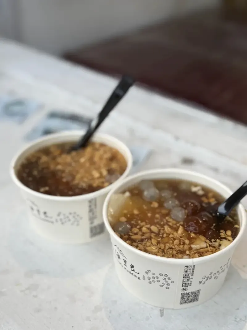 ท่ามกลางบรรยากาศเย็นสบายริมแม่น้ำตั้นสุ่ย จะเห็นรถสุดคิ้วท์สไตล์มินิมอลคันเล็กที่ดึงดูดนักกินด้วยกลิ่นหอม ร้านพุดดิ้งเต้าหู้เคลื่อนที่เสิร์ฟของหวานขึ้นชื่ออย่างพุดดิ้งเต้าหู้เนื้อนุ่มเด้ง คลุกเคล้ากับไข่มุกไต้หวันหนึบหนับ แยมผลไม้รสชาติกลมกล่อม และซอสชีสเค็มมันที่ทำให้ทุกคำมีความลงตัวระหว่างหวานกับเค็มอย่างพอดี