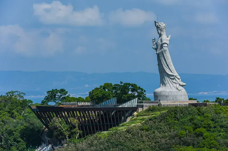 วัดเทียนโฮ่วตั้งอยู่บนเกาะ Nangan เป็นศาลเจ้าที่อุทิศแด่ Mazu เทพีแห่งท้องทะเลซึ่งชาวเรือและชุมชนชายฝั่งในจีนตอนใต้ให้ความเคารพมาหลายศตวรรษ ตามตำนานเล่าว่าร่างของเทพีหมาจู่เคยลอยขึ้นสู่ชายฝั่งบริเวณนี้ ทำให้พื้นที่ดังกล่าวกลายเป็นสถานที่ศักดิ์สิทธิ์ และมีการสร้างศาลเจ้าขึ้นในเวลาต่อมา บริเวณวัดตั้งอยู่ใกล้ชายฝั่ง สามารถมองเห็นทะเลเปิดของหมู่เกาะ Matsu Islands เป็นศูนย์รวมกิจกรรมทางศาสนาและพิธีกรรมของชุมชน โดยเฉพาะเทศกาลบูชาเทพีหมาจู่ซึ่งจัดขึ้นเป็นประจำทุกปี ไม่ไกลจากวัดคือ Mazu Giant Statue รูปปั้นเทพีหมาจู่ขนาดใหญ่ที่หันหน้าออกสู่ทะเล สร้างขึ้นเพื่อแสดงถึงการคุ้มครองชาวประมงและผู้เดินเรือที่สัญจรผ่านน่านน้ำของหมู่เกาะหมาจู่