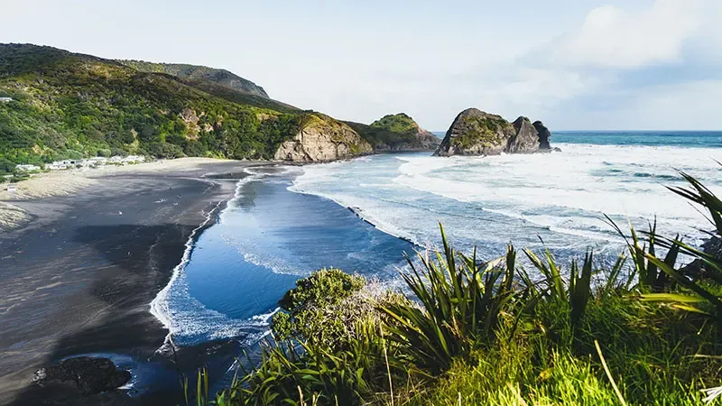 สัมผัสสายลมและเกลียวคลื่นที่ Piha Beach