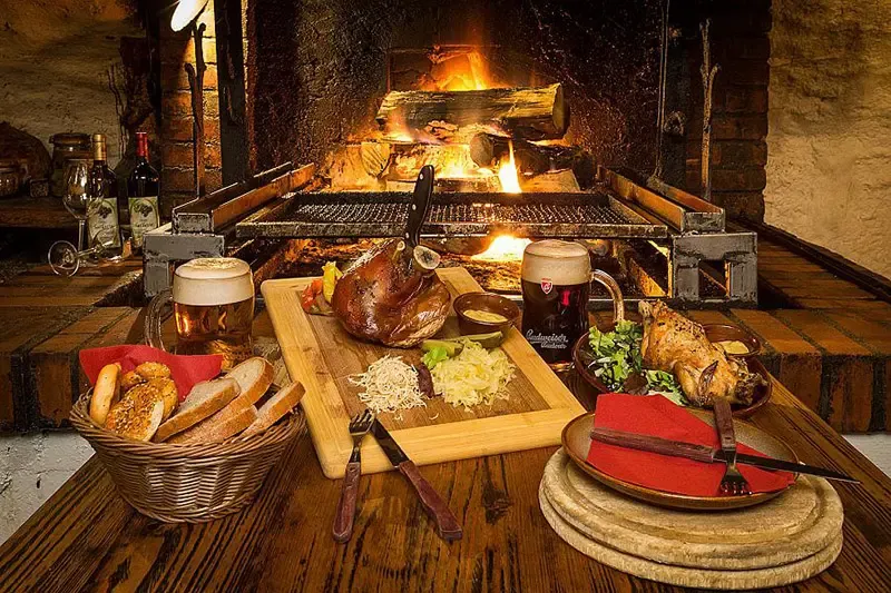 ร้านอาหารระดับตำนานของ cesky krumlovที่ยังคงเสิร์ฟเมนูย่างด้วยเตาไฟแบบดั้งเดิม เน้นหมูย่าง ซี่โครง เนื้อวัว และไส้กรอก รสเข้ม เสิร์ฟคู่เครื่องเคียงสูตรเช็ก บรรยากาศภายในชวนให้นึกถึงโรงเตี๊ยมยุคกลาง ด้วยผนังหิน แสงเทียนสลัว และกลิ่นหอมจากเตาย่างที่อบอวลทั่วร้าน ที่นี่จึงเป็นหมุดหมายของนักเดินทางที่อยากสัมผัสรสชาติอาหารพื้นเมืองในบรรยากาศดั้งเดิม และเติมความทรงจำของเมืองหยดน้ำด้วยรสอาหารพื้นเมืองแท้